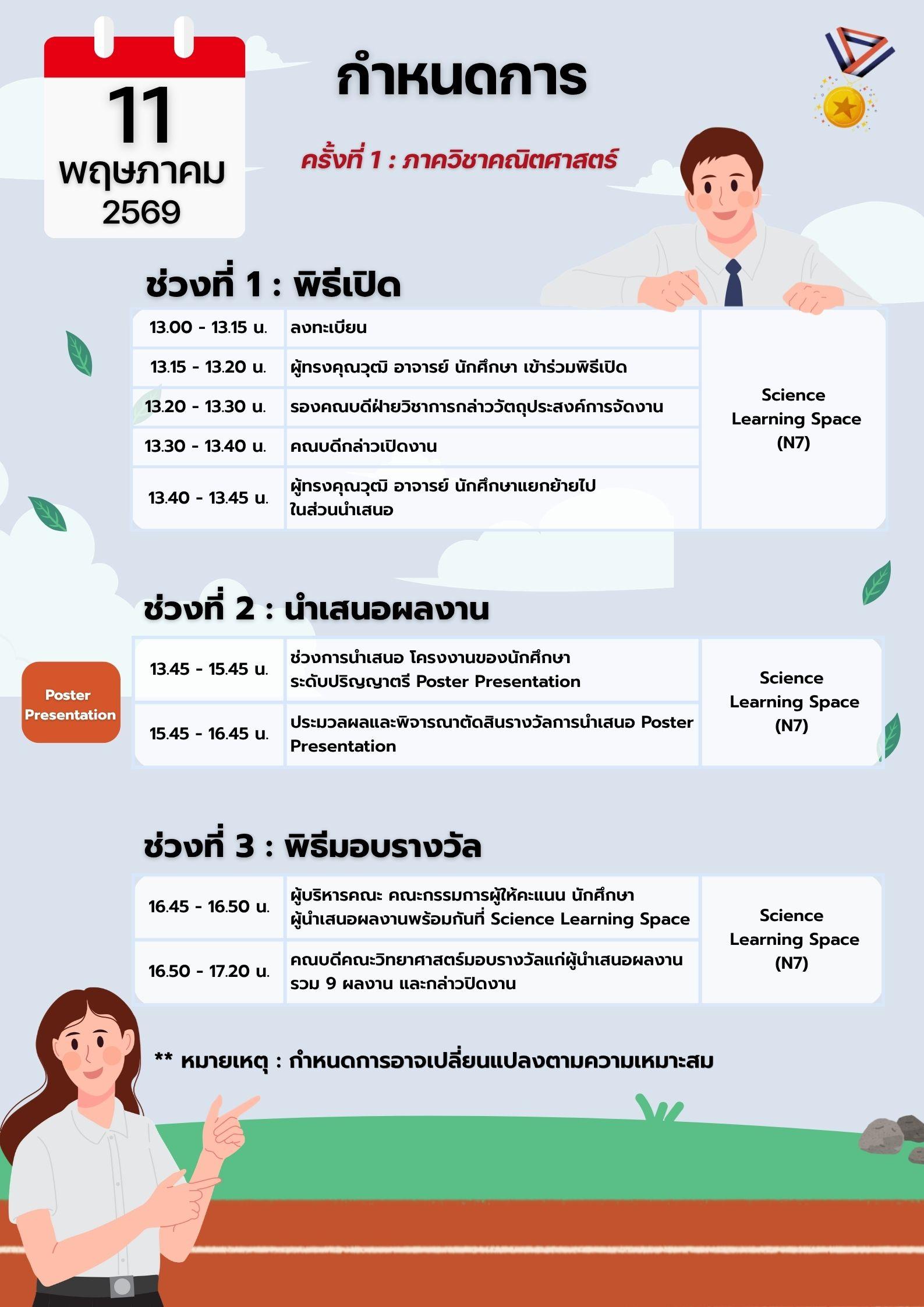 วันที่ 11 พฤษภาคม 2569 โครงงานของนักศึกษา จากภาควิชาคณิตศาสตร์