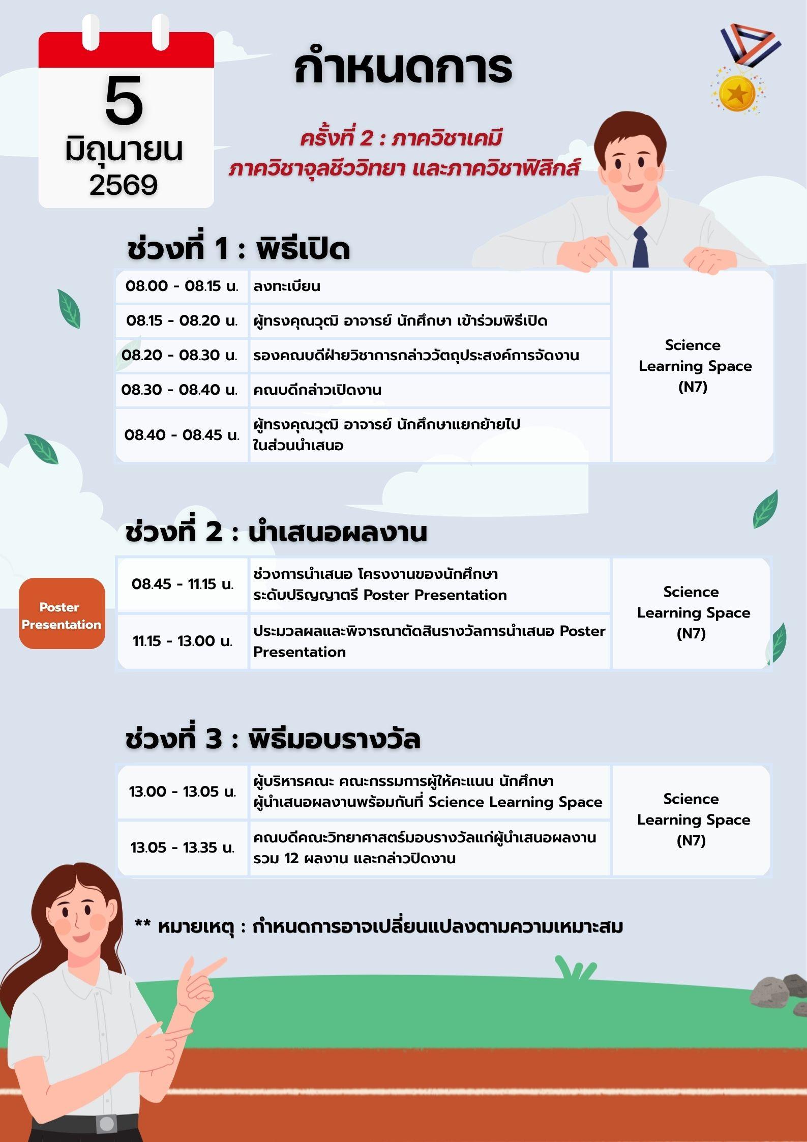 ในวันที่ 5 มิถุนายน 2569 โครงงานของนักศึกษา จากภาควิชาเคมี ภาควิชาจุลชีววิทยา และภาควิชาฟิสิกส์