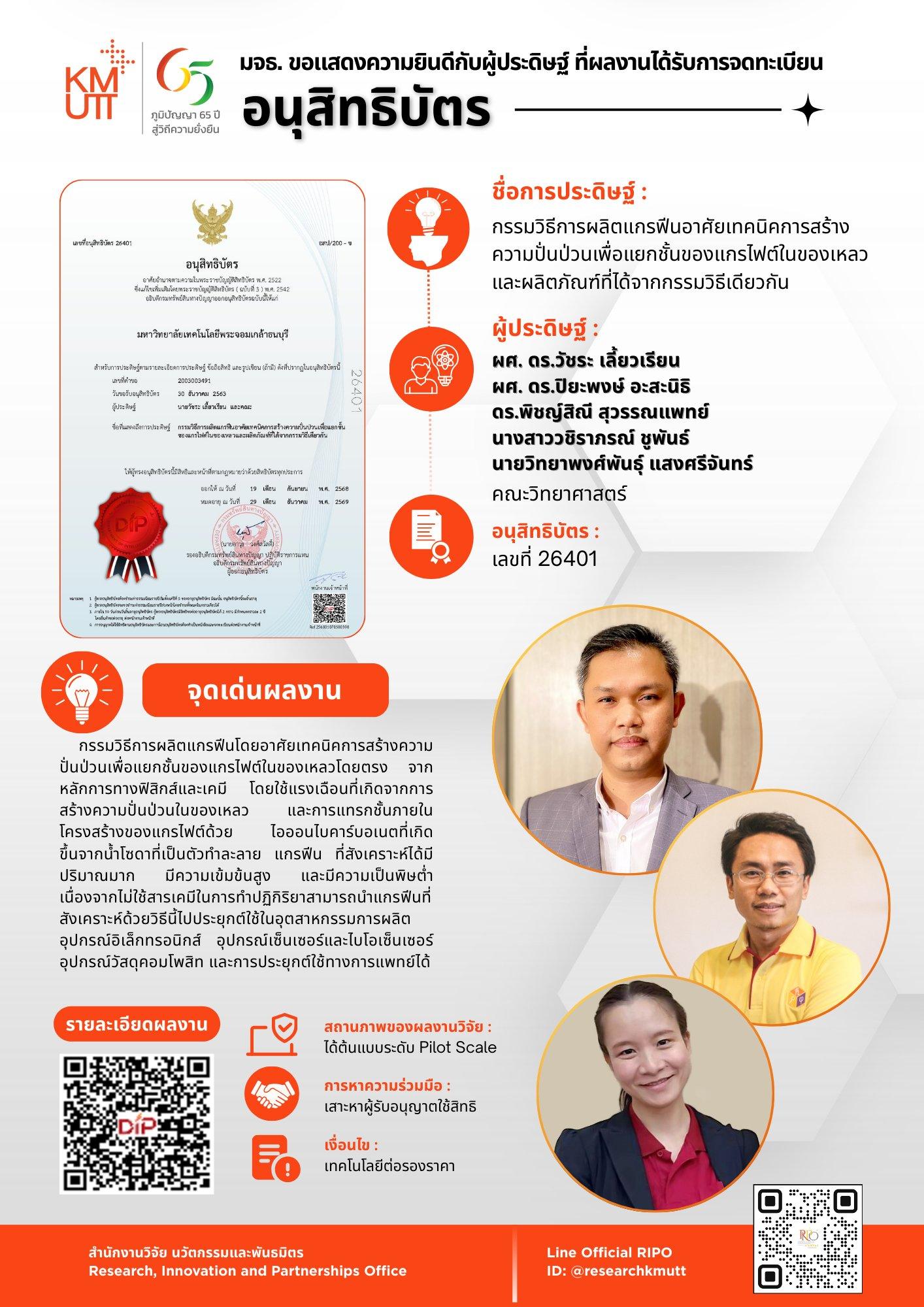 มจธ. ขอแสดงความยินดีกับผู้ประดิษฐ์ ที่ผลงานได้รับการจดทะเบียนอนุสิทธิบัตร