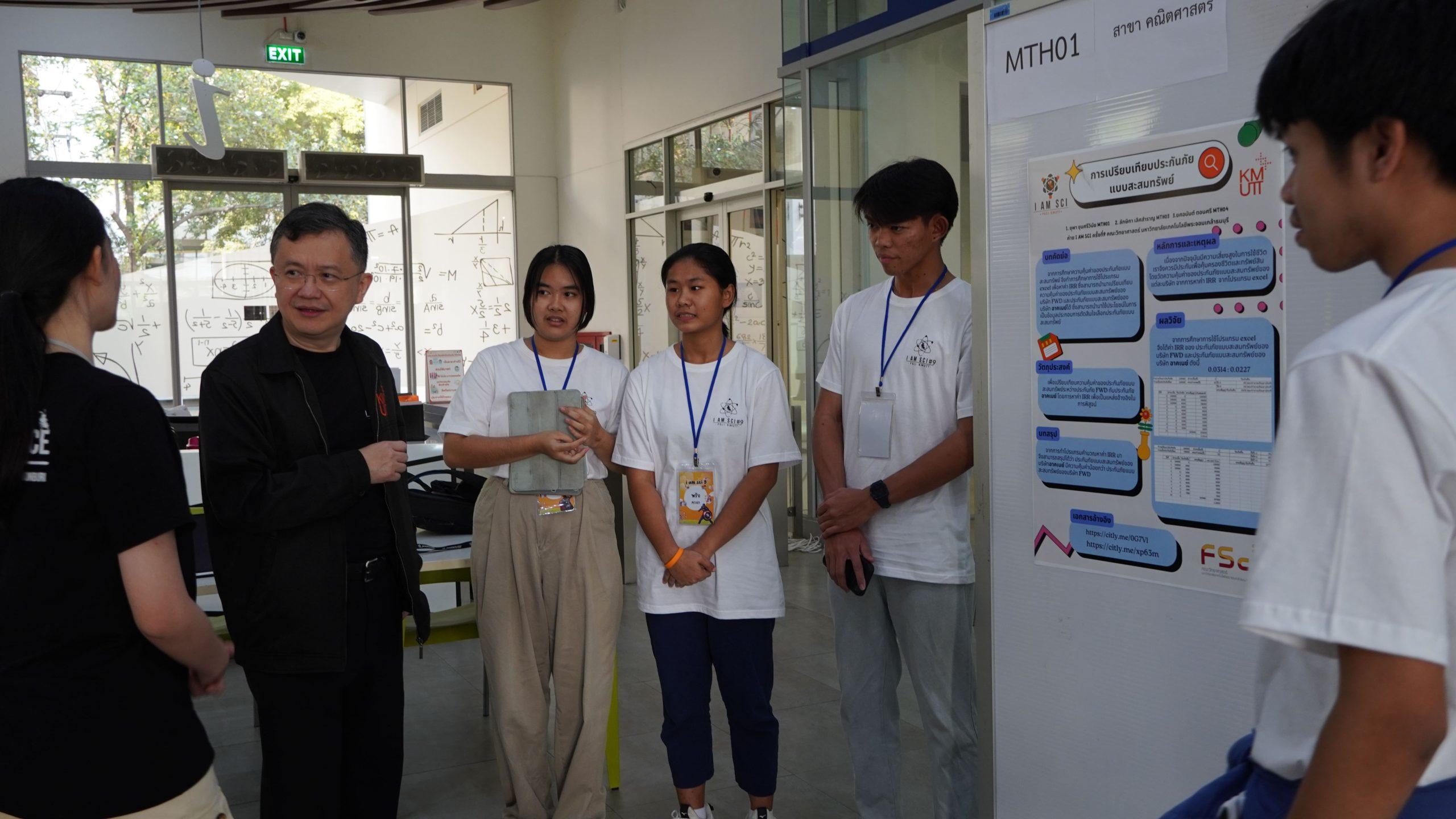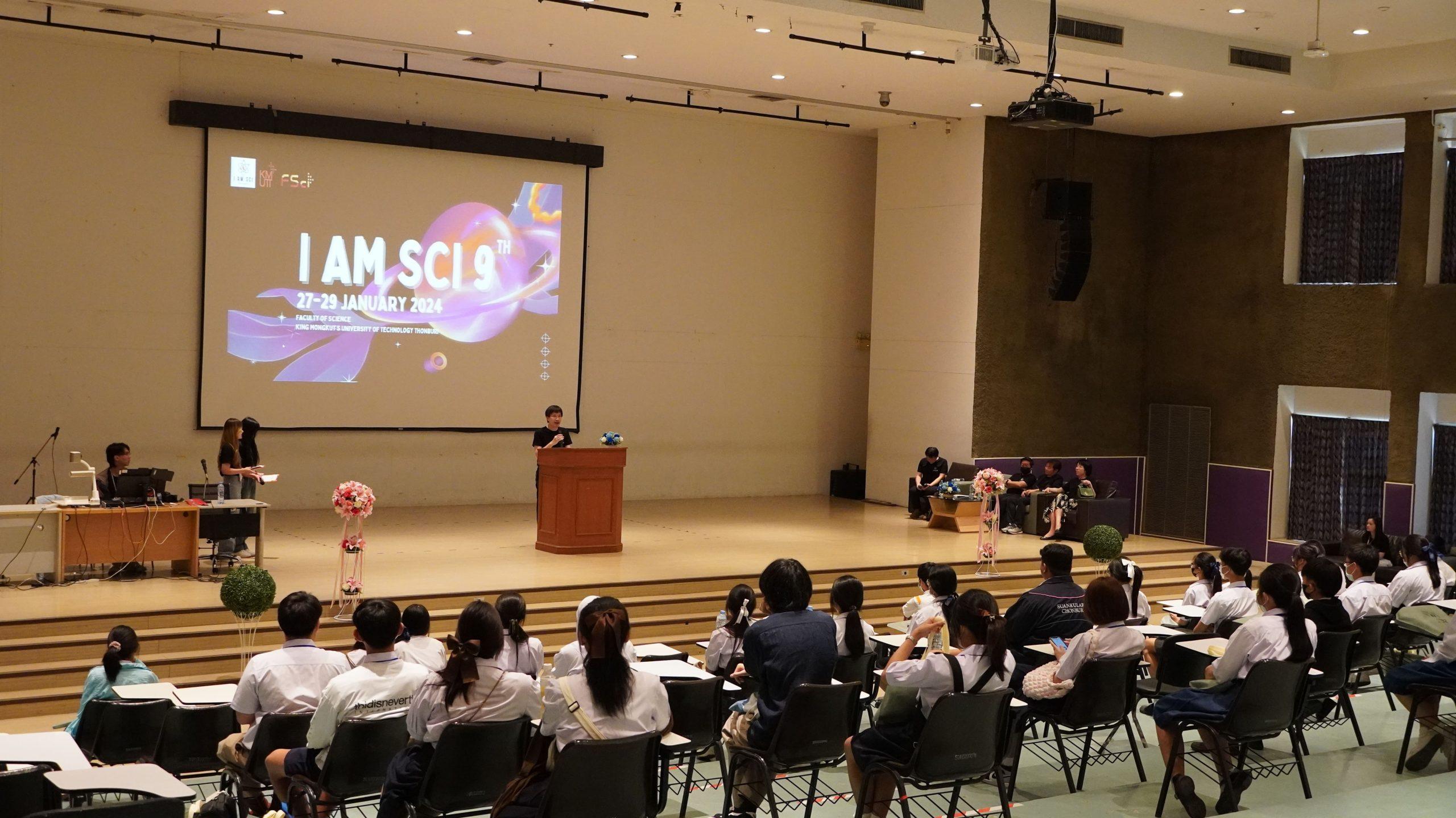 วันที่ 27-29 มกราคม 2567 คณะวิทยาศาสตร์ มจธ. ได้จัดกิจกรรมโครงการค่าย I AM SCI ครั้งที่ 9 ประจำปี 2567 ณ คณะวิทยาศาสตร์ มหาวิทยาลัยเทคโนโลยีพระจอมเกล้าธนบุรี (มจธ.) เพื่อกระตุ้นและสร้างความตระหนักให้นักเรียนสนใจเรียนวิทยาศาสตร์เพิ่มขึ้น รวมทั้งประชาสัมพันธ์หลักสูตรการเรียนการสอนระดับปริญญาตรีของคณะวิทยาศาสตร์ โดย รศ. ดร.ตุลา จูฑะรสก คณบดีคณะวิทยาศาสตร์ เป็นประธานกล่าวต้อนรับนักเรียน ผู้ปกครองและกล่าวเปิดค่าย รวมทั้งกล่าวถึงความโดดเด่นของหลักสูตรการเรียนการสอนแต่ละสาขาวิชาของคณะวิทยาศาสตร์ และกิจกรรมการแลกเปลี่ยนเรียนรู้ที่ผู้เข้าค่ายจะได้รับตลอดระยะเวลาทั้ง 3 วัน ทั้งนี้ผู้บริหารและอาจารย์คณะวิทยาศาสตร์ได้ร่วมให้ความรู้ต่าง ๆ ดังนี้ “โอกาสการเรียนรู้ในต่างประเทศของนักศึกษา” โดย ผศ. ดร.นุจริน จงรุจา ผู้ช่วยคณบดีฝ่ายกิจการนานาชาติและพัฒนาความเป็นสากล “การสร้างแรงบันดาลใจในเส้นทางอาชีพด้านวิทยาศาสตร์และเทคโนโลยี” โดย ดร.รัชนิกร ชลไชยะ และ ผศ. ดร.วิทยา กาญจนภูษากิจ ซึ่งนักเรียนจะได้มีโอกาสศึกษาและลงมือทำโครงงานทางด้านวิทยาศาสตร์ในภาควิชาต่าง ๆ ทั้งภาควิชาคณิตศาสตร์ ภาควิชาเคมี ภาควิชาจุลชีววิทยา และภาควิชาฟิสิกส์ โดยคาดหวังว่านักเรียนจะทราบความต้องการของตนเองในการวางแผนการศึกษาต่อในอนาคตและมีความรู้และเข้าใจในคณะวิทยาศาสตร์ มจธ. มากยิ่งขึ้น นอกจากนี้ยังได้รับความรู้จากอาจารย์แต่ละภาควิชาเกี่ยวกับหลักสูตรการเรียนการสอนแต่ละสาขาวิชา ในวันสุดท้าย ได้รับเกียรติจาก รศ. ดร.เชาวลิต ลิ้มมณีวิจิตร รองอธิการบดีฝ่ายพัฒนานักศึกษาและผู้เรียนรู้ กล่าวต้อนรับและให้กำลังใจนักเรียนนำเสนอโครงงาน และสอบสัมภาษณ์ โดย อาจารย์บุปผชาติ จันทร์สว่าง ที่ปรึกษาคณะทำงานโครงการค่ายฯ กล่าวแสดงความยินดีกับนักเรียนที่ผ่านการคัดเลือกเข้าร่วมกิจกรรมค่ายและกล่าวปิดค่าย ในช่วงบ่ายมีการสอบสัมภาษณ์นักเรียนที่สนใจเข้าศึกษาต่อในคณะวิทยาศาสตร์ ปีการศึกษา 2567 โดยมีผู้บริหารคณะวิทยาศาสตร์และอาจารย์จากภาควิชาร่วมต้อนรับ และร่วมสังเกตการณ์ผู้เข้าร่วมกิจกรรมตลอด 3 วัน 2 คืน ซึ่งบรรยากาศเป็นไปด้วยความสนุกสนาน อบอุ่น และเป็นกันเอง