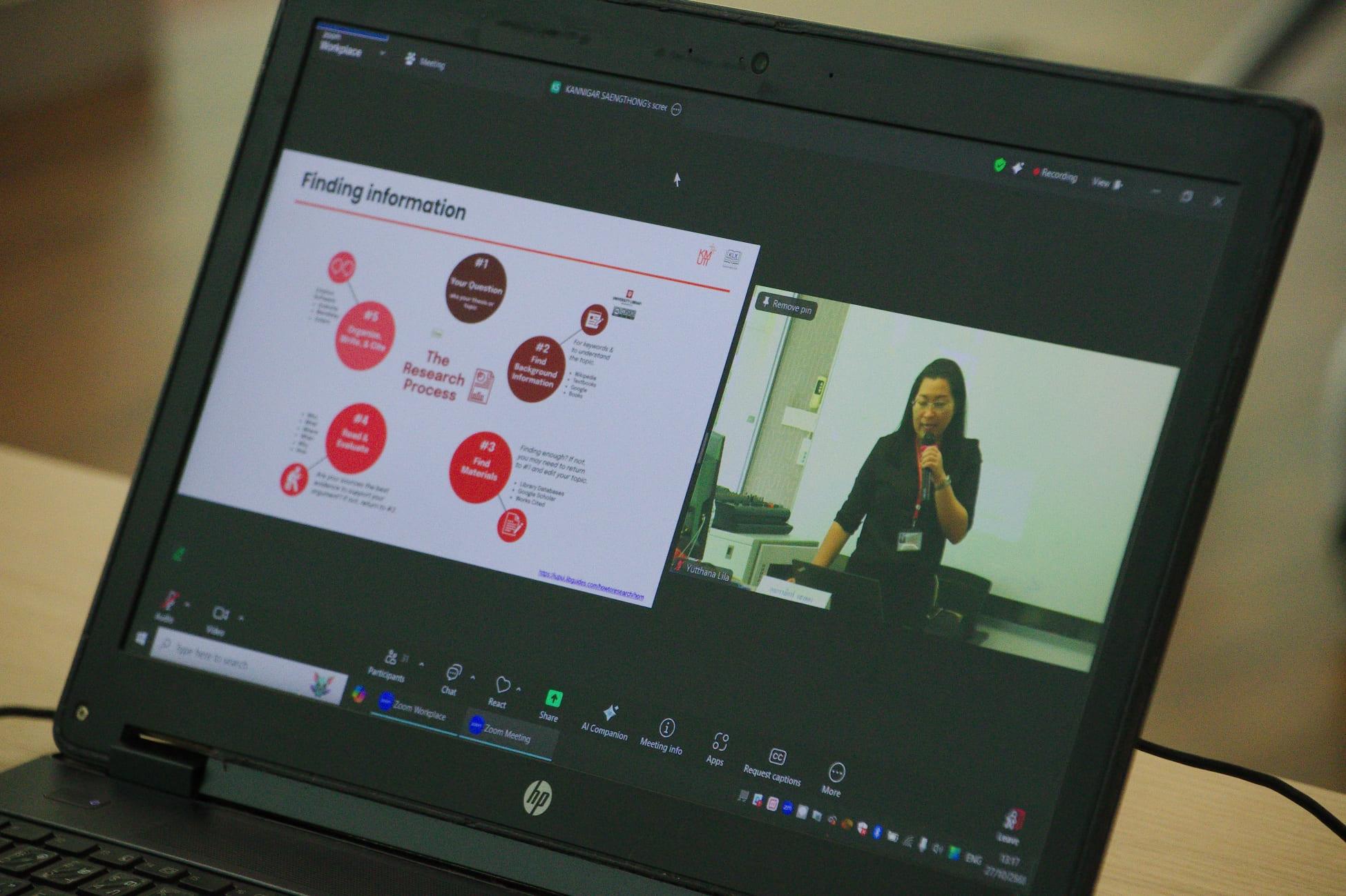 ในการอบรมครั้งนี้ได้รับเกียรติจากคุณกรรณิการ์ แสงทอง นักบรรณสารสนเทศ สำนักงานหอสมุด มจธ. เป็นวิทยากร ถ่ายทอดความรู้และแนวทางการใช้งานโปรแกรมอย่างละเอียด พร้อมตอบข้อซักถามจากผู้เข้าร่วมอย่างเป็นกันเอง โดยมีผู้เข้าร่วมอบรมทั้งในรูปแบบออนไลน์และออนไซต์ รวมทั้งสิ้น 49 คน ประกอบด้วยนักศึกษาระดับบัณฑิตศึกษา 41 คน อาจารย์และเจ้าหน้าที่คณะวิทยาศาสตร์ 8 คน