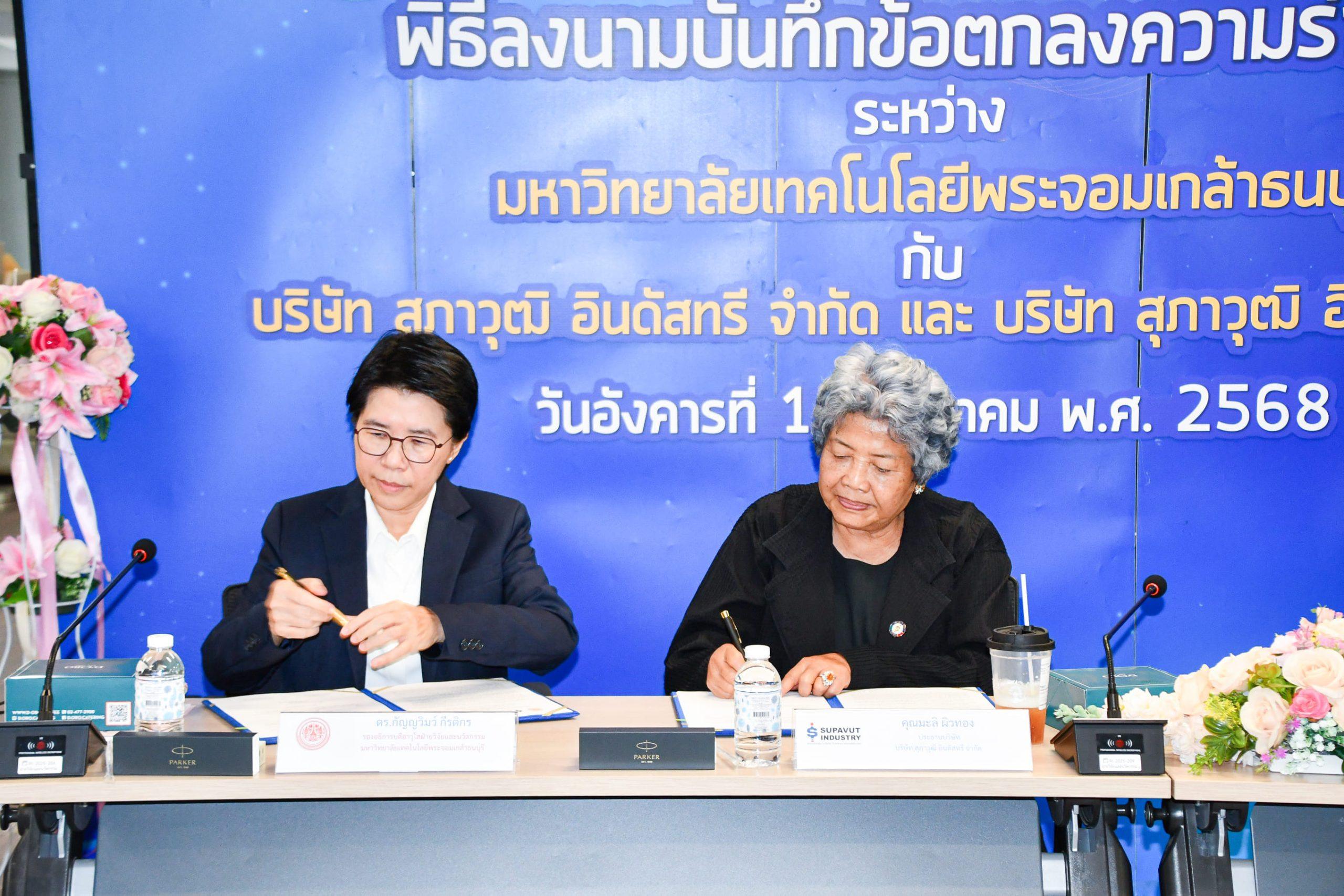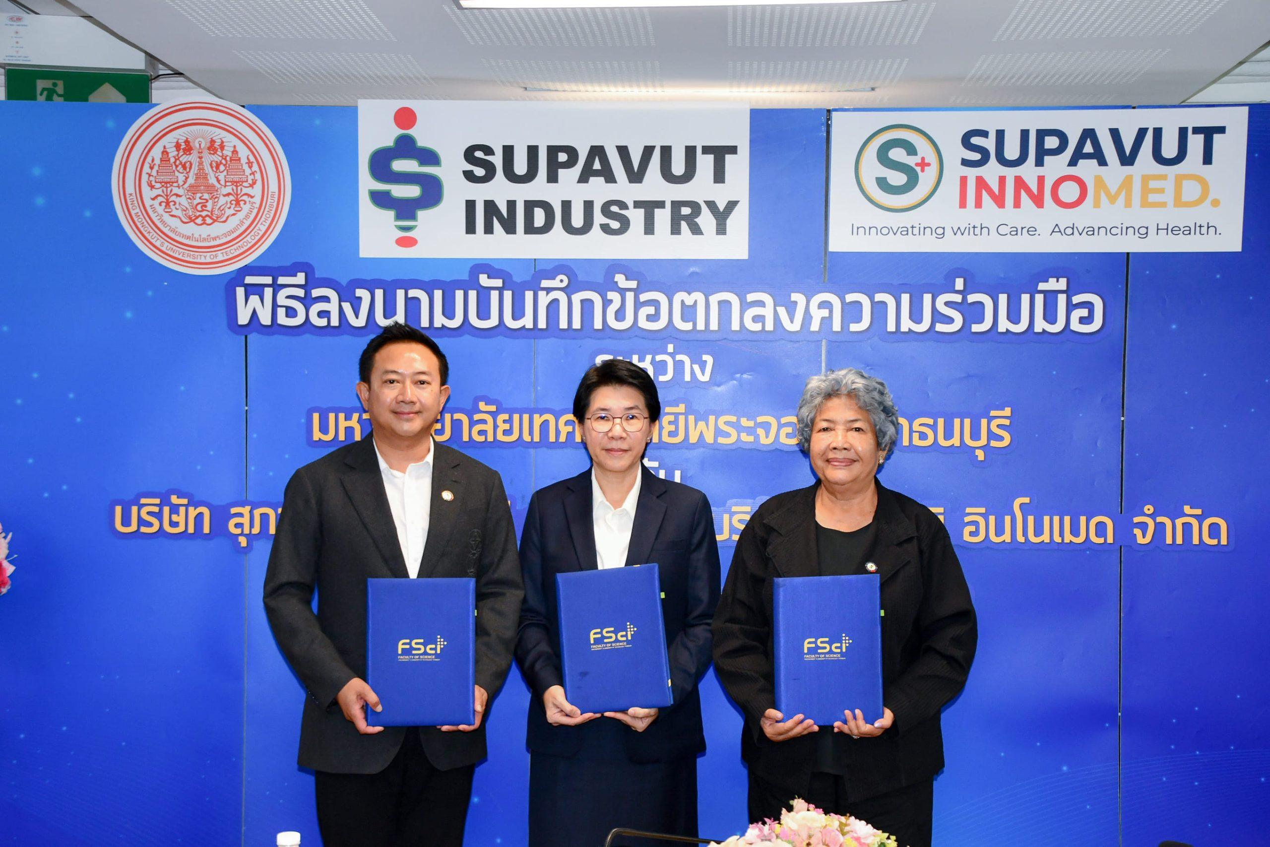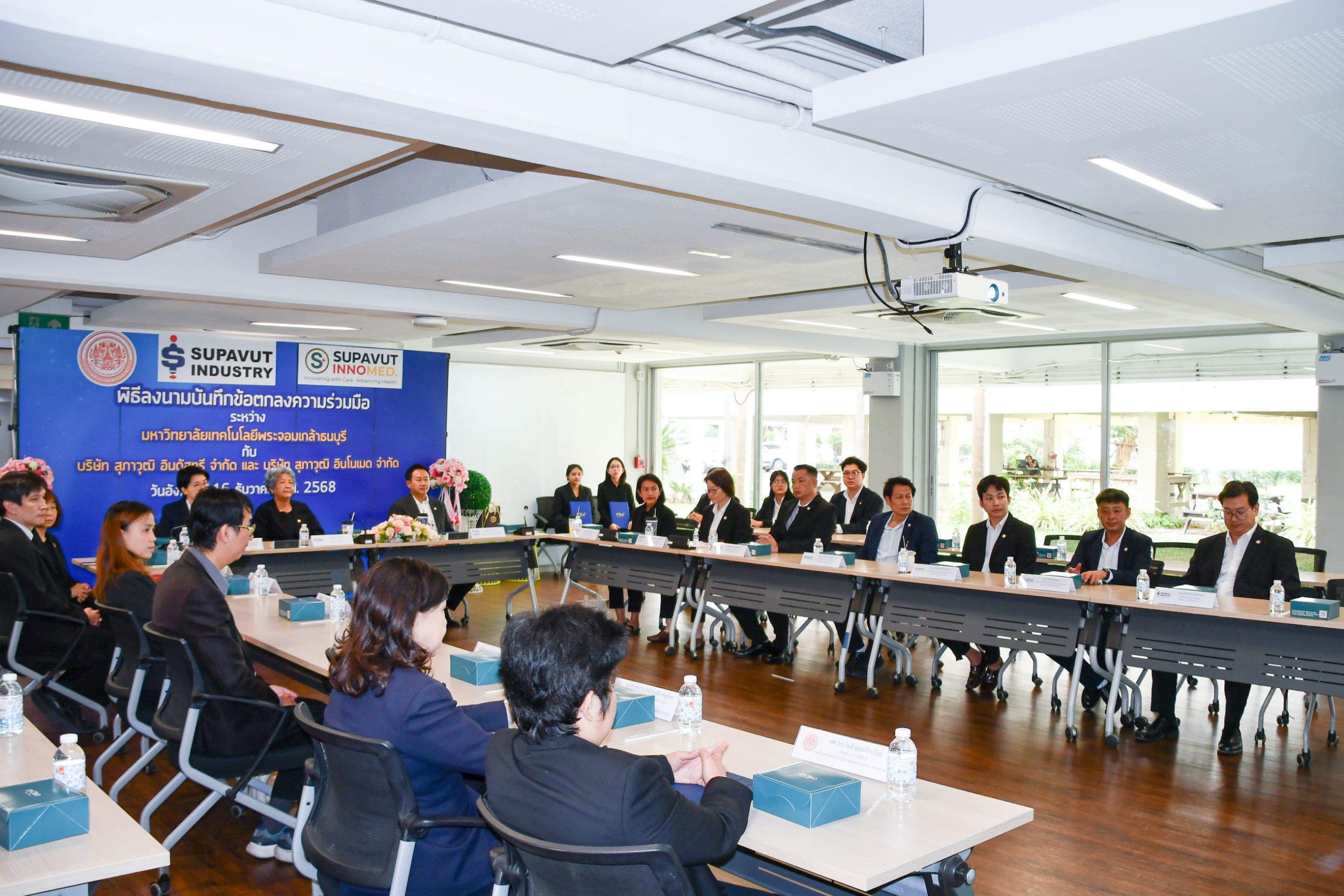 เมื่อวันอังคารที่ 16 ธันวาคม พ.ศ. 2568 คณะวิทยาศาสตร์ มหาวิทยาลัยเทคโนโลยีพระจอมเกล้าธนบุรี (มจธ.) จัดพิธีลงนามบันทึกข้อตกลงความร่วมมือด้านการวิจัย การพัฒนานักศึกษา และการพัฒนาบุคลากร ระหว่าง มหาวิทยาลัยเทคโนโลยีพระจอมเกล้าธนบุรี กับ บริษัท สุภาวุฒิ อินดัสทรี จำกัด และ บริษัท สุภาวุฒิ อินโนเมด จำกัด ณ ห้องประชุม Science Connect คณะวิทยาศาสตร์ มจธ.