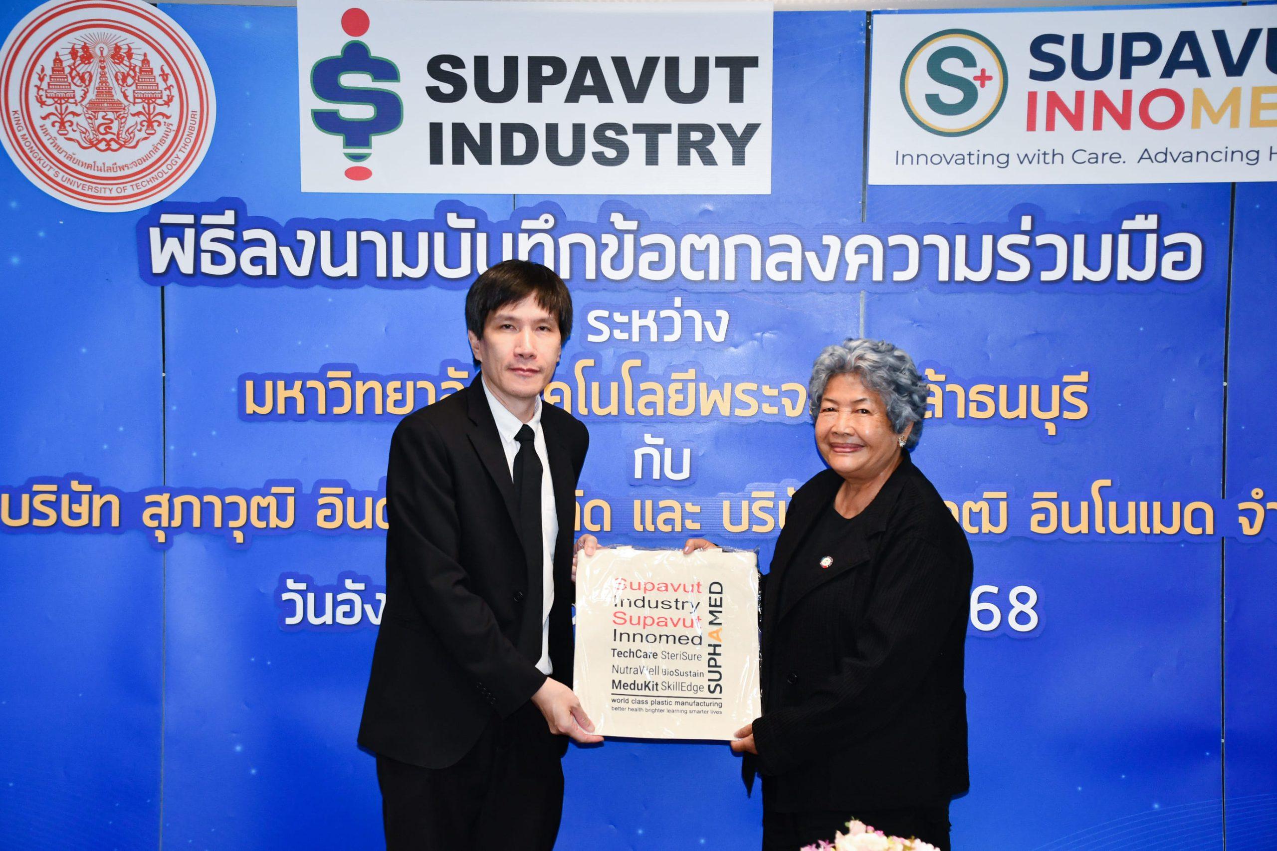 พิธีดังกล่าวได้รับเกียรติจาก ดร.กัญญวิมว์ กีรติกร รองอธิการบดีอาวุโสฝ่ายวิจัยและนวัตกรรม มหาวิทยาลัยเทคโนโลยีพระจอมเกล้าธนบุรี เป็นประธานฝ่ายมหาวิทยาลัย ทางฝ่ายภาคเอกชน นำโดย คุณมะลิ ผิวทอง ประธานบริษัท สุภาวุฒิ อินดัสทรี จำกัด และ คุณวุฒิชัย ผิวทอง ประธานบริษัท สุภาวุฒิ อินโนเมด จำกัด พร้อมคณะผู้บริหาร