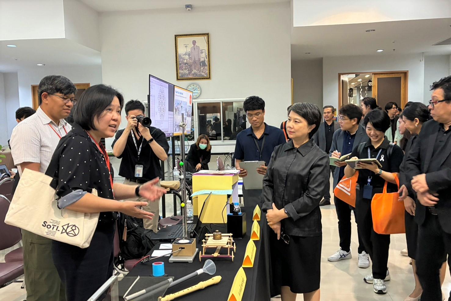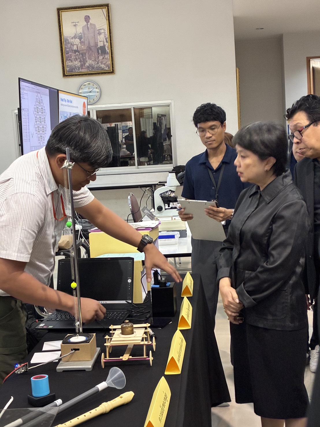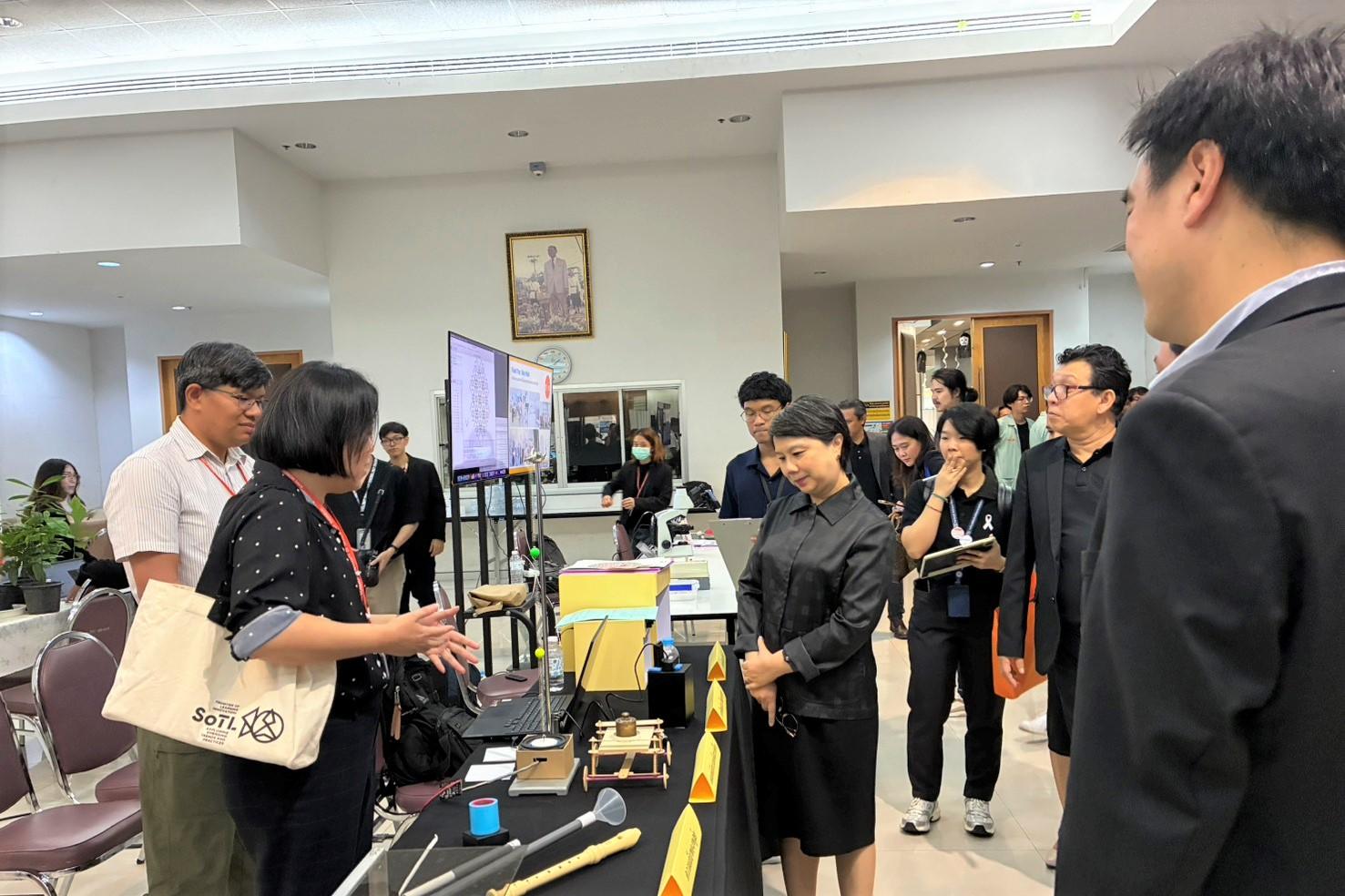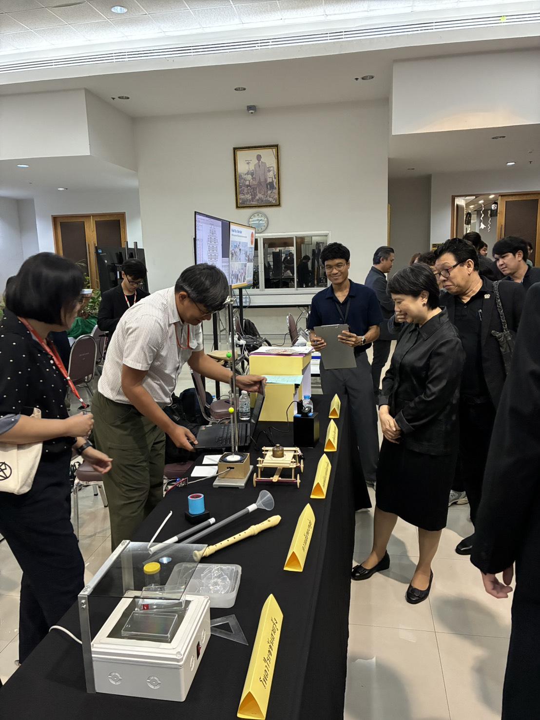 นำเสนอการบูรณาการบริการทางวิชาการของศูนย์เครื่องมือฯ กับแนวทางการเรียนรู้แบบ Active Learning ภายในบูธได้แสดงกิจกรรมตัวอย่าง เช่น การสั่นสะเทือนในรถยนต์และ Polarization ของแสง เพื่อให้นักเรียนเห็นความเชื่อมโยงระหว่างเนื้อหาวิชาการในห้องเรียนกับการประยุกต์ใช้ในเทคโนโลยีและนวัตกรรมจริง เช่น การเรียนเรื่องการสั่นสะทือนในปี 1 ที่นำไปใช้ในชิ้นส่วนรถยนต์และหลักการต่างๆ ซึ่งช่วยให้นักเรียนเห็นภาพและสามารถพัฒนานวัตกรรมต่อยอดในอนาคตได้