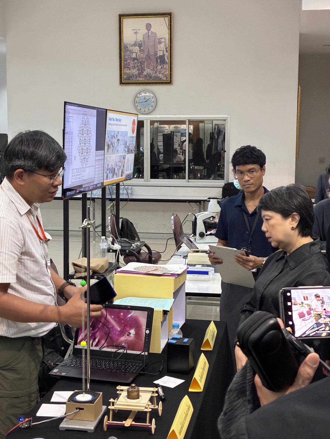 ในการนี้ คณะผู้บริหารและเจ้าหน้าที่จาก อพวช. ได้เดินทางเข้าเยี่ยมชมผลงานของคณะวิทยาศาสตร์ ณ ห้องประชุม LIB108 สำนักหอสมุด มจธ. ซึ่งคณะวิทยาศาสตร์ได้จัดแสดงผลงานภายใต้ 2 บูธหลัก ได้แก่