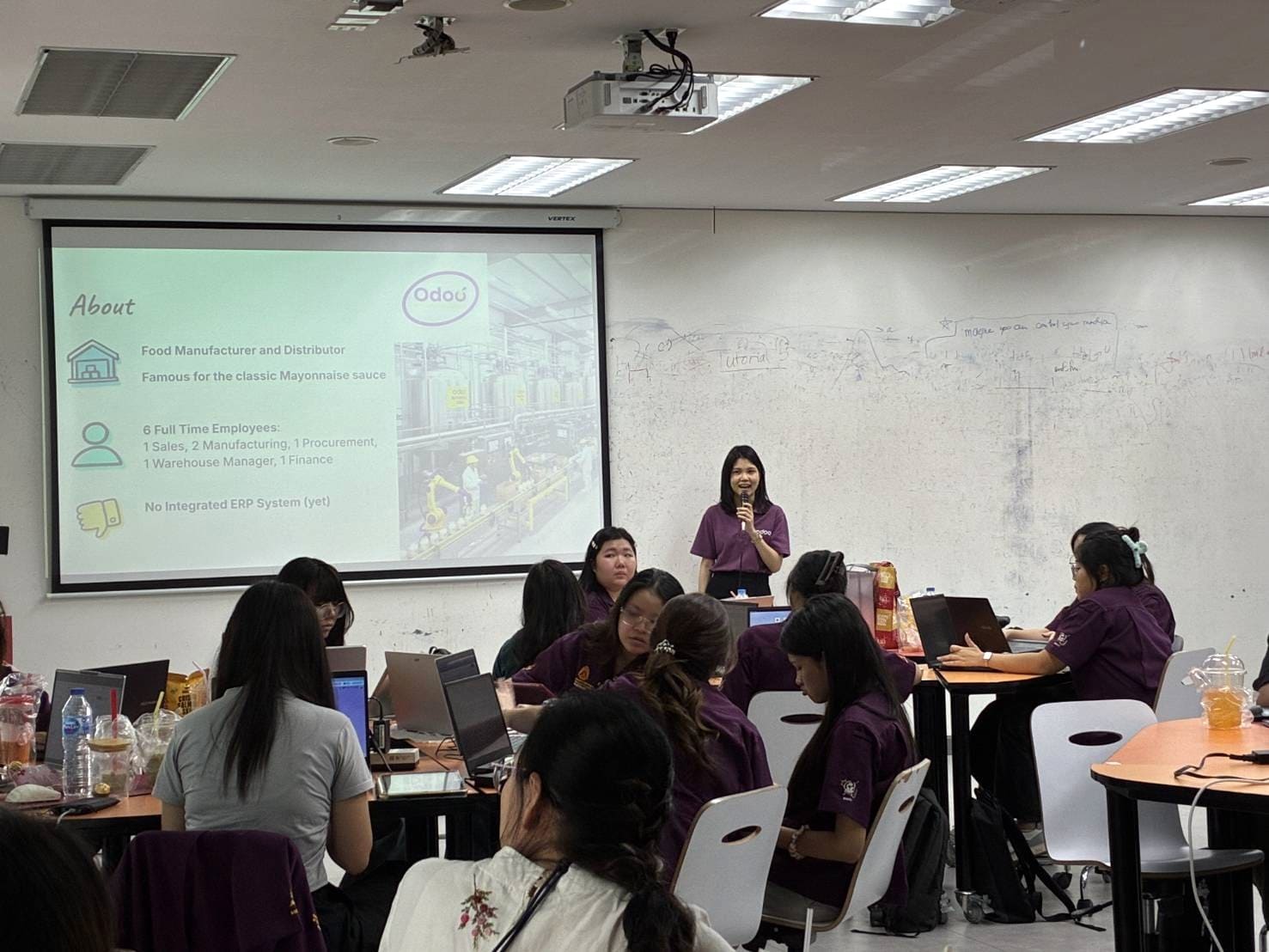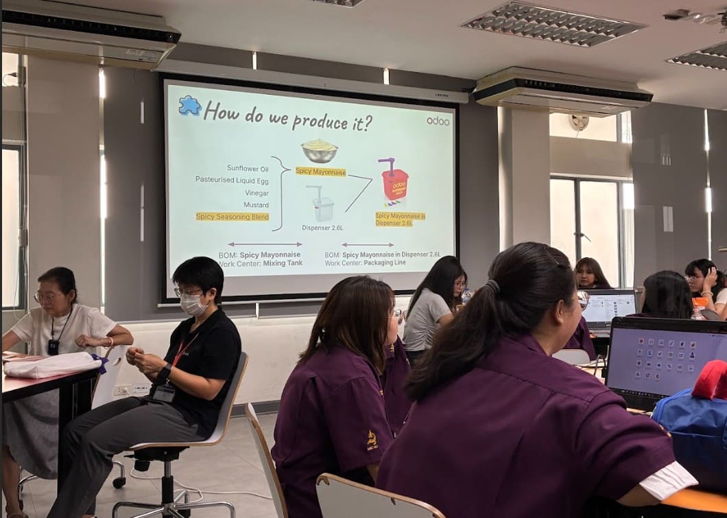 เมื่อวันที่ 23 กุมภาพันธ์ 2569 ภาควิชาจุลชีววิทยา คณะวิทยาศาสตร์ มหาวิทยาลัยเทคโนโลยีพระจอมเกล้าธนบุรี ได้จัดกิจกรรม Workshop สุดพิเศษในรายวิชา FST 333 Smart Manufacturing for Food Industry โดยได้รับเกียรติจาก คุณวิมวิภา กำแหงปฏิยุทธ (Education Program Officer) จากบริษัท ODOO ผู้เชี่ยวชาญด้านซอฟต์แวร์บริหารจัดการธุรกิจครบวงจร (ERP) มาเป็นวิทยากรบรรยาย