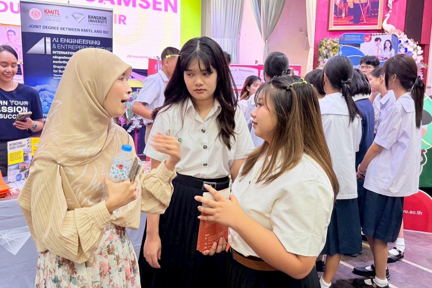 เมื่อวันที่ 24 พฤศจิกายน 2568 คณะวิทยาศาสตร์ มหาวิทยาลัยเทคโนโลยีพระจอมเกล้าธนบุรี (มจธ.) ร่วมกับ สำนักงานคัดเลือก และ DD-CT Program, KMUTT เข้าร่วมกิจกรรมออกบูธแนะแนวการศึกษาต่อระดับอุดมศึกษา ณ โรงเรียนสามเสนวิทยาลัย เพื่อให้ข้อมูลแก่นักเรียนระดับชั้นมัธยมศึกษาปีที่ 1–6 เกี่ยวกับแนวทางการศึกษาต่อและโอกาสทางอาชีพในสายวิทยาศาสตร์
