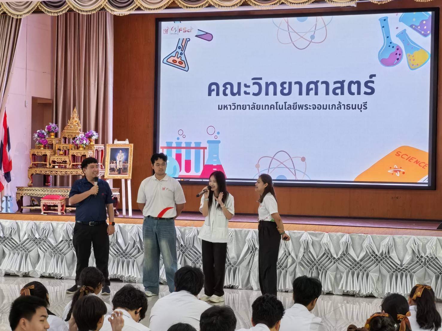 เมื่อวันที่ 20 กุมภาพันธ์ 2569 คณะวิทยาศาสตร์ มจธ. จัดกิจกรรมแนะแนวการศึกษา โดยทีมงาน Active Recruitment งานพัฒนาการศึกษา งานกิจการนานาชาติ และนักศึกษารุ่นพี่ ลงพื้นที่พบปะและให้ข้อมูลคุณครูและนักเรียน เพื่อเตรียมความพร้อมสู่รั้วมหาวิทยาลัย