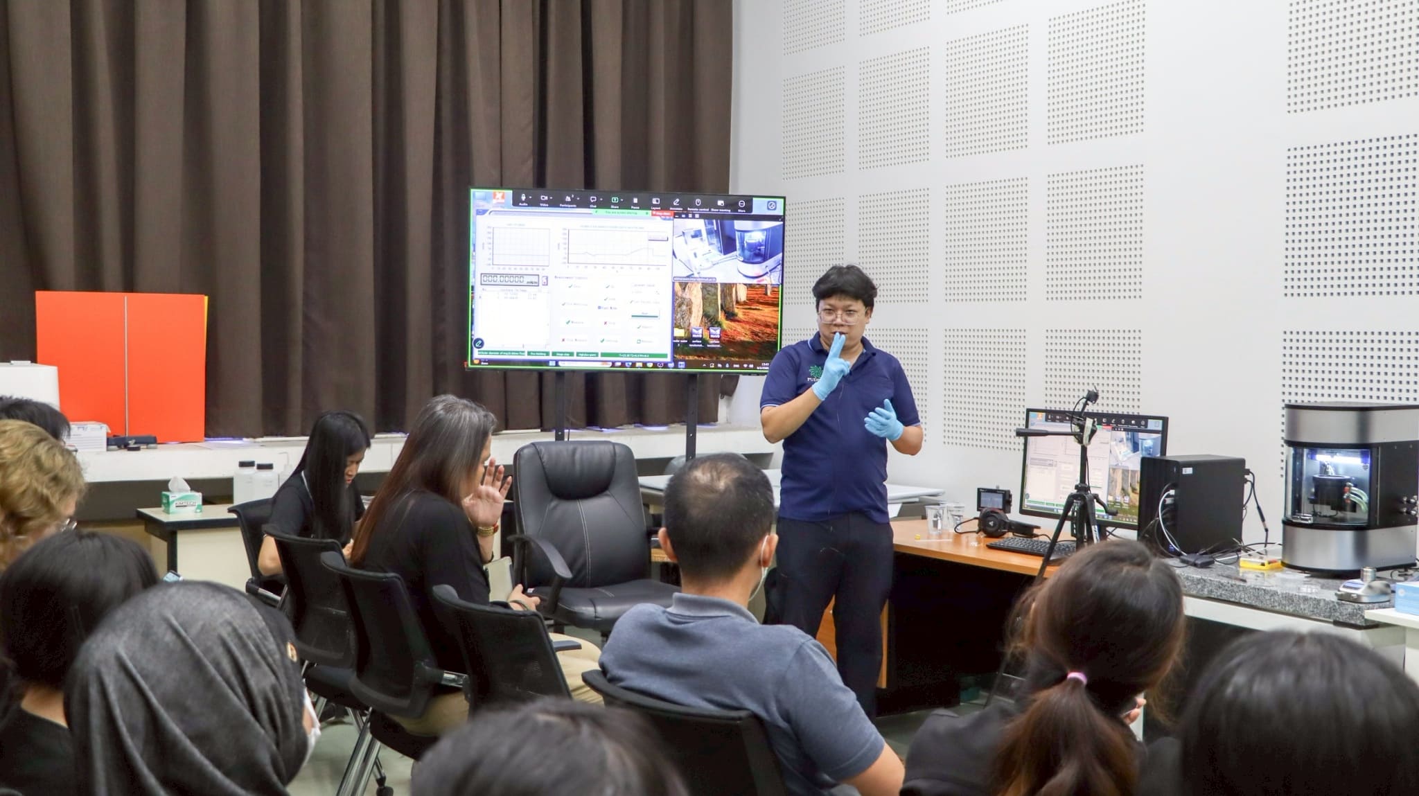 และในช่วงบ่าย: เป็นกิจกรรมการลงมือปฏิบัติจริงใน Demo Workshop โดยผู้เข้าร่วมได้ชมการสาธิตการใช้งานเครื่องมือและการเตรียมตัวอย่าง เพื่อให้เข้าใจขั้นตอนการวัดที่แม่นยำ และการดูแลรักษาเครื่องมืออย่างถูกวิธี