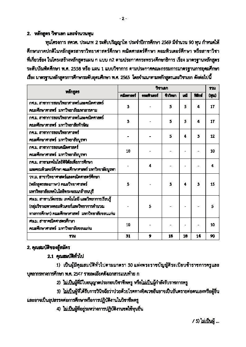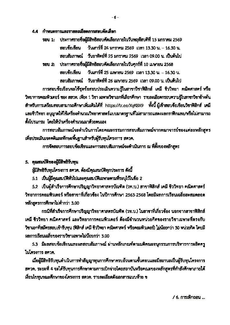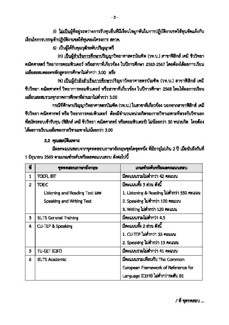 • สำเร็จการศึกษาระดับปริญญาตรี / กำลังสำเร็จการศึกษาในปี พ.ศ.2568 สาขาวิทยาศาสตร์บัณฑิต (ฟิสิกส์ เคมี ชีววิทยา คณิตศาสตร์ วิทยาการคอมพิวเตอร์ หรือสาขาที่เกี่ยวข้อง)