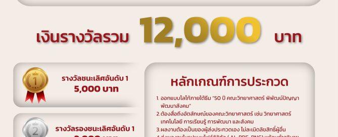 ภายใต้ธีม “50 ปี คณะวิทยาศาสตร์ พัฒนาปัญญา พัฒนาสังคม” เงินรางวัลรวม 12,000 บาท รางวัลชนะเลิศ [...]