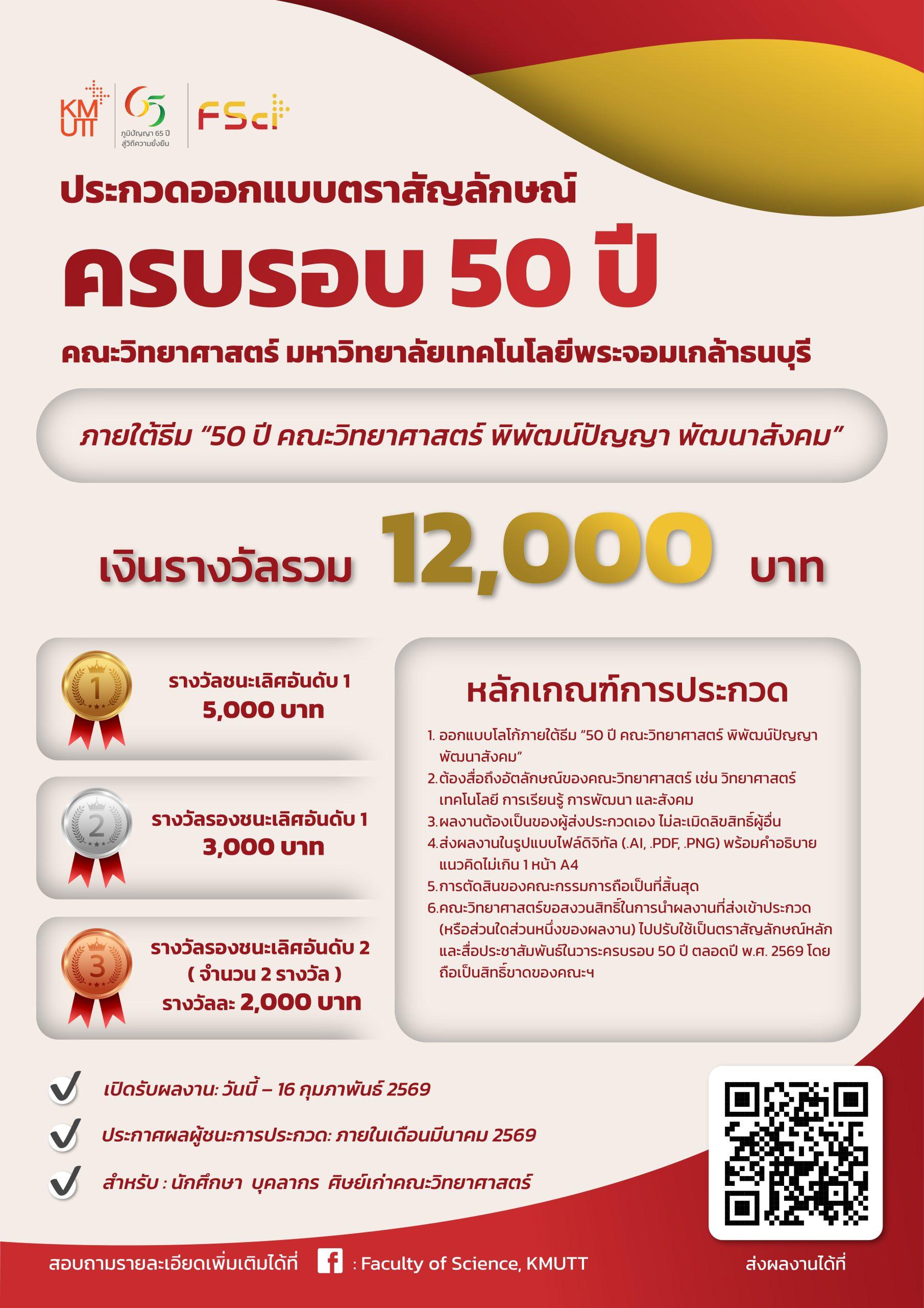 ภายใต้ธีม “50 ปี คณะวิทยาศาสตร์ พัฒนาปัญญา พัฒนาสังคม” เงินรางวัลรวม 12,000 บาท รางวัลชนะเลิศ [...]