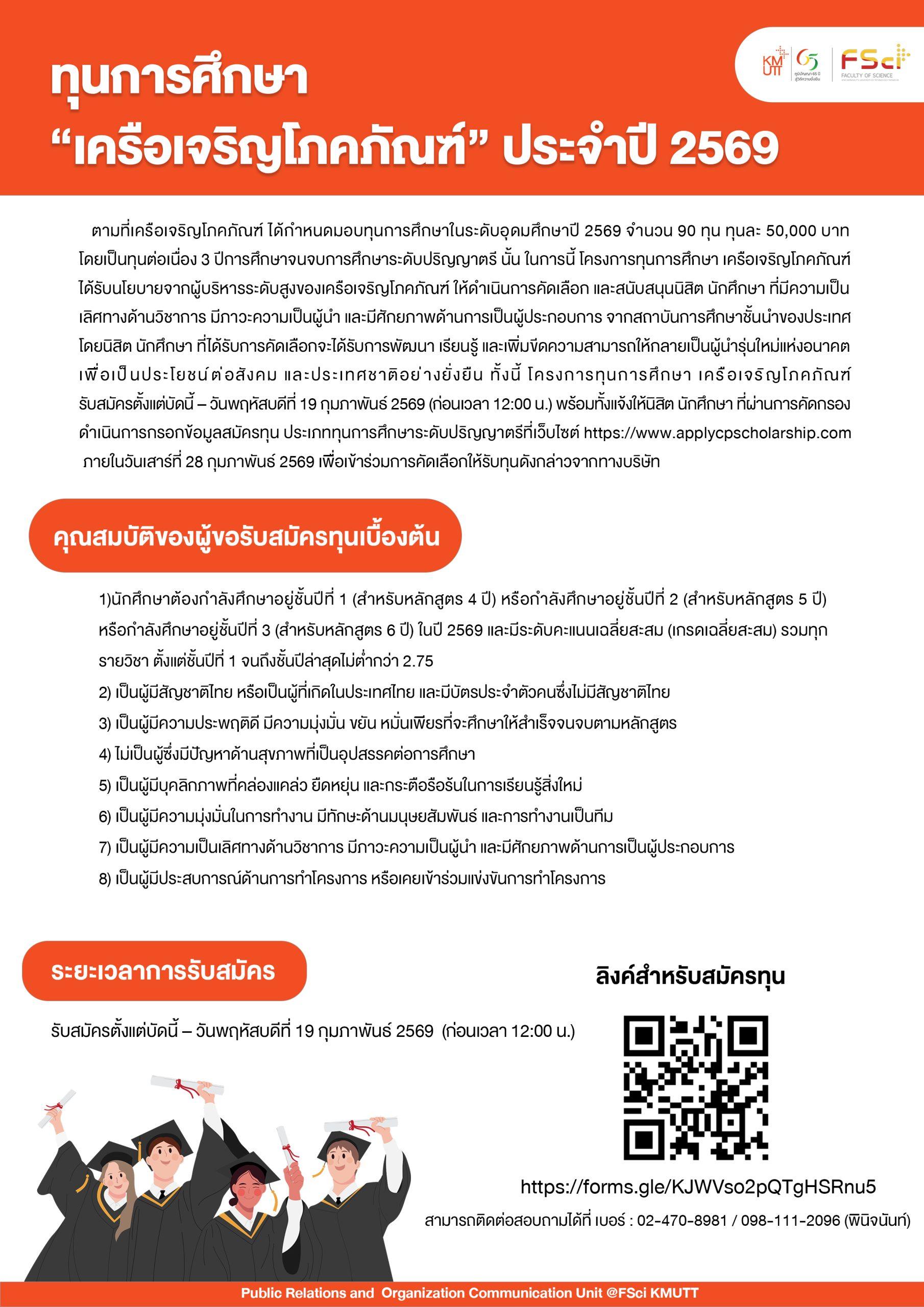 โครงการทุนการศึกษาเครือเจริญโภคภัณฑ์ ประจำปี 2569