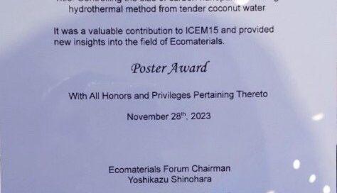 ภาควิชาฟิสิกส์ คณะวิทยาศาสตร์ เข้าร่วมนำเสนอผลงาน ในงาน 15TH INTERNATIONAL CONFERENCE ON ECOMATERIALS 2023 (ICEM15)