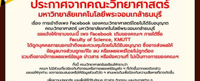 คณะวิทยาศาสตร์ มหาวิทยาลัยเทคโนโลยีพระจอมเกล้าธนบุรี ขอแจ้งให้ทราบขณะนี้ เพจ Facebook เดิมของคณะฯ ภายใต้ชื่อ 👉 Faculty of [...]