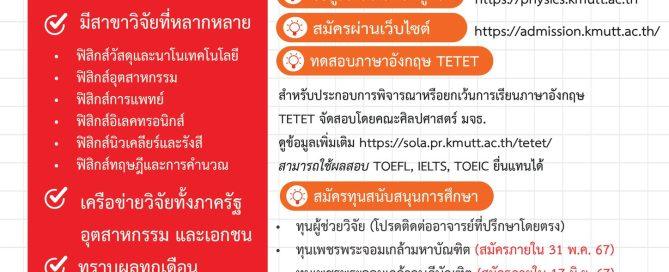 หลักสูตร วท.ม. และ ปร.ด. สาขาวิชาฟิสิกส์ เปิดรับนักศึกษาเพื่อเข้าศึกษาต่อในภาคการศึกษาที่ 1/2567 (เริ่มศึกษาสิงหาคม 2567)