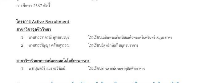 - ประกาศคณะวิทยาศาสตร์ มหาวิทยาลัยเทคโนโลยีพระจอมเกล้าธนบุรี เรื่อง รายชื่อผู้ผ่านการคัดเลือกเข้าศึกษาต่อระดับปริญญาตรี TCAS รอบที่2 ประจำปีการศึกษา 2567 โครงการ Active Recruitment Gallery