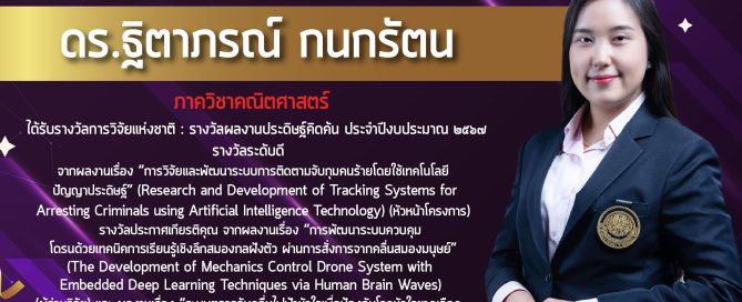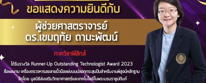 ได้รับรางวัล Runner-Up Outstanding Technologist Award 2023 ชื่อผลงาน เครื่องตรวจหารอยลายนิ้วมือแฝงบนปลอกกระสุนปืนสำหรับงานพิสูจน์หลักฐาน จัดโดย มูลนิธิส่งเสริมวิทยาศาสตร์และเทคโนโลยีในพระบรมราชูปถัมภ์ [...]
