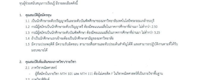 ทุนที่สนับสนุนการทำวิจัยเพื่อพัฒนาการเรียนรู้ตามผลลัพธ์การเรียนรู้ของนักศึกษาในหลักสูตร ประเภททุนพัฒนางานวิจัยในชั้นเรียน ทุนพัฒนาการเรียนรู้เชิงรุก (Active learning) ตลอดจนทุนพัฒนาสิ่งประดิษฐ์และสื่อการเรียนรู้ โดยเปิดรับสมัคร ตั้งแต่บัดนี้จนถึงวันที่ 14 [...]
