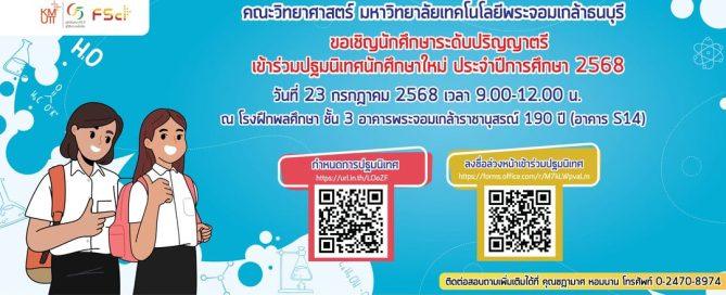 📢คณะวิทยาศาสตร์ มหาวิทยาลัยเทคโนโลยีพระจอมเกล้าธนบุรี ✨ขอเชิญนักศึกษาใหม่ ระดับปริญญาตรี เข้าร่วมปฐมนิเทศนักศึกษาใหม่ ประจำปีการศึกษา 2568 🗓️ วันที่ 23 [...]