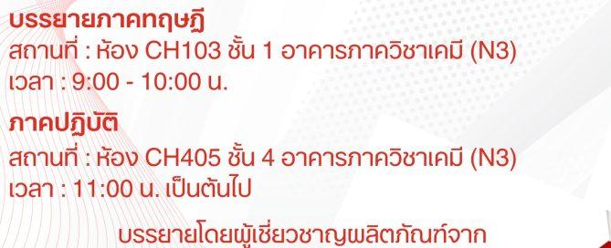 ภาควิชาเคมี ร่วมกับบริษัท เบคไทย กรุงเทพอุปกรณ์เคมีภัณฑ์ จำกัด ขอเชิญชวนทุกท่านเข้าร่วมอบรมการใช้งานเครื่องวิเคราะห์สารด้วยแสงอินฟราเรด (FT-IR Spectrometer) ในวันพุธที่ 21 [...]